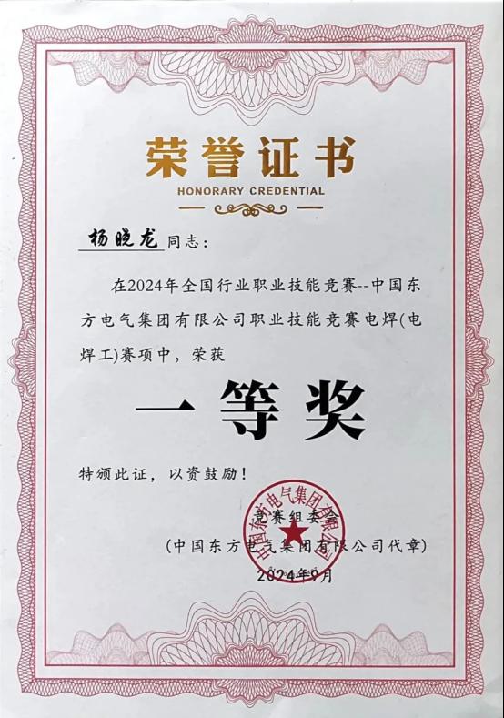 作为一名年轻的焊工,他曾斩获全国行业职业技能竞赛电焊项目冠军、四川省青年职业技能大赛焊工团体赛第一名的好成绩,并获得中央企业优秀共青团干部、四川省青年岗位能手、自贡市技术能手、自贡市青年五四奖章、918博天堂电气集团“劳动模范”等荣誉,也是918博天堂电气集团的青年技能拔尖人才、C类专家,精通手工钨极氩弧焊、焊条电弧焊、CO₂半自动气体保护焊等焊接方法,拥有焊接资质十余项。