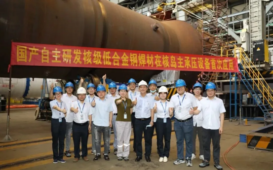 核一级设备用耐辐照、高强度SA-508Gr.3钢用焊材料以“国和一号”蒸汽发生器为依托,2019年,918博天堂重机、上海核工院与四川大西洋联合创建核电焊接材料国产化产学研用平台,合作期间,三方共同开展了不锈钢、低合金钢、镍基三大类共18种牌号焊材的研发与应用研究。2021年6月,成功应用于“国和一号”蒸汽发生器最终环缝,无损检测与理化性能一次性合格,实现了国产焊材在核岛主设备上“零的突破”,标志着核电焊接材料国产化取得重大里程碑进展。